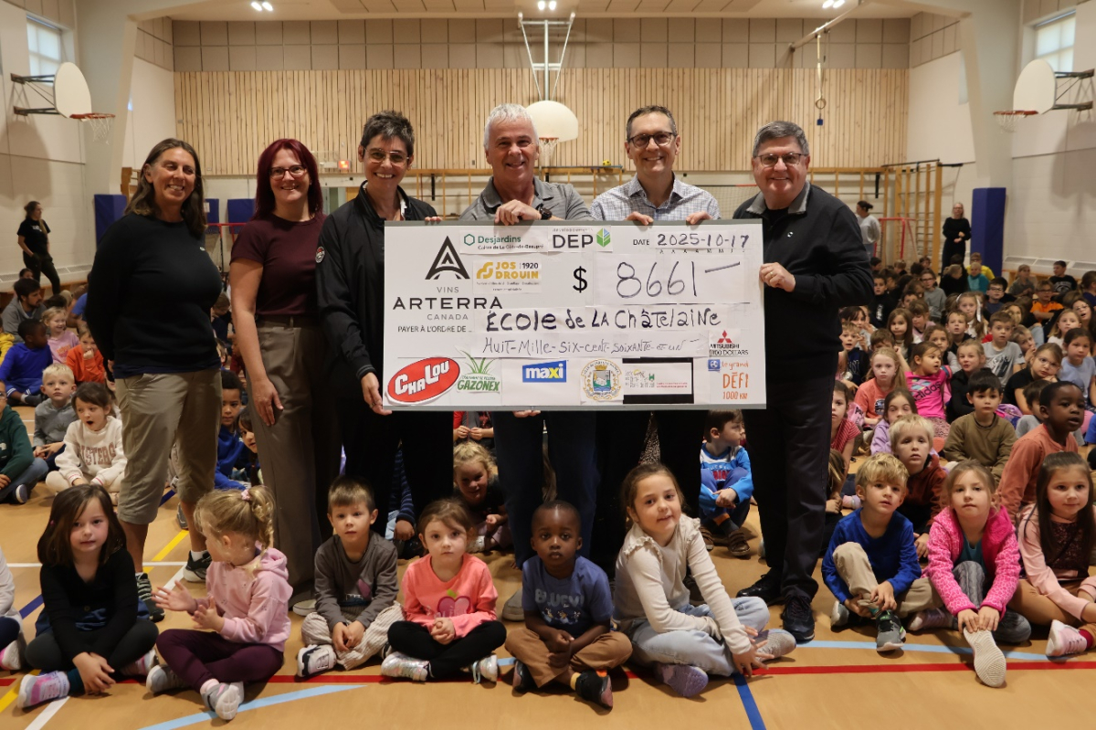Dans le cadre du Grand Défi Pierre Lavoie, Pierre Thibault, chef d’équipe, a choisi pour la troisième année de remettre les fonds amassés par une équipe de cyclistes de la Côte-de-Beaupré qui ont roulé pour les jeunes de l’école La Châtelaine afin de promouvoir le sport et la santé, ainsi que l’achat de matériel pour faire bouger les élèves de l’école.