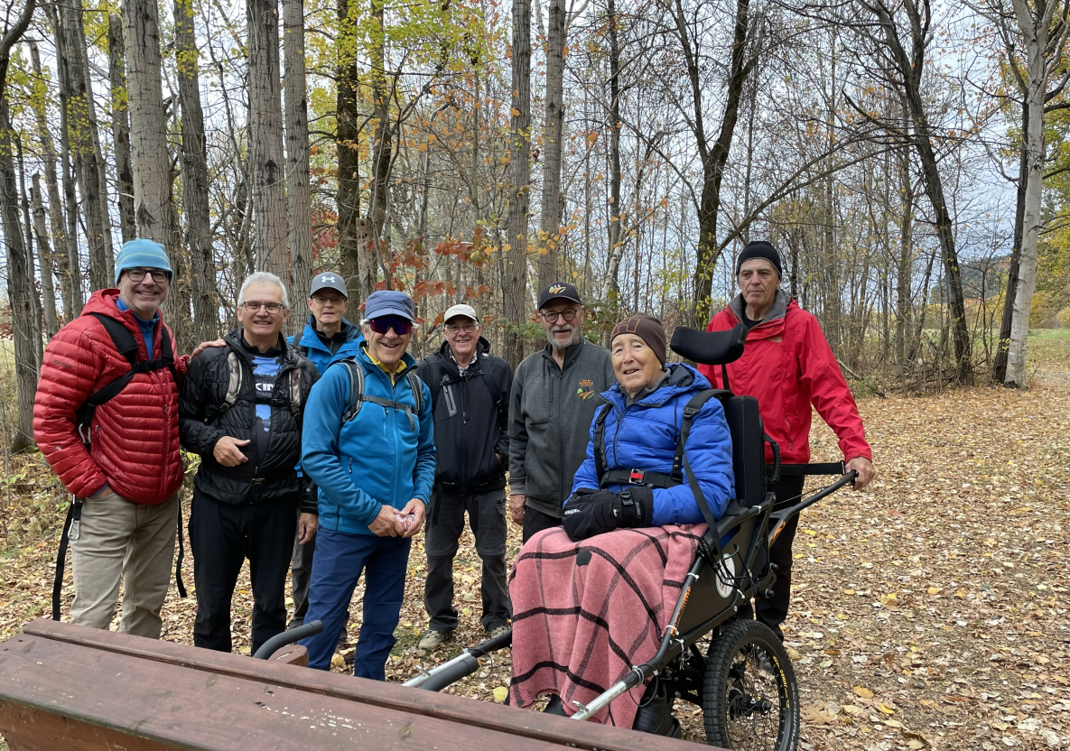 Sur la photo, la joëlette est un équipement permettant aux personnes à mobilité réduite de profiter des randonnées du Club. (S.L.) (Photo : gracieuseté Club de Marche Côte-de-Beaupré)