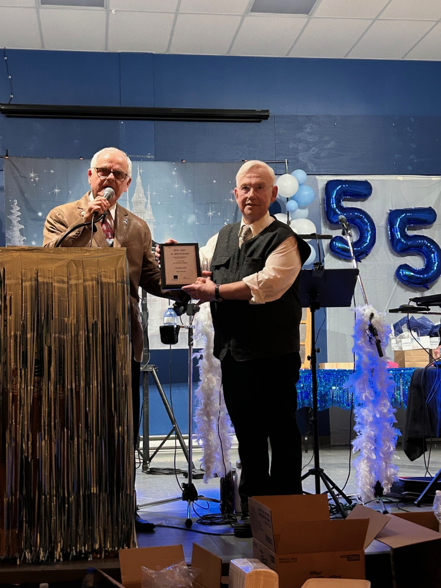 Le Club FADOQ de Château-Richer qui compte 200 membres a célébré son 55e anniversaire de fondation, le 7 février dernier, en présence de 250 personnes et plusieurs maires et invités de la région dont Kariane Bourassa, députée de Charlevoix-Côte-de-Beaupré, qui a tenu à féliciter les membres du club et son président. Sur la photo, Michel Bourgoin, responsable secteur Orléans FADOQ, qui remet une plaque souvenir à Claude Verreault, président du Club FADOQ de Château-Richer. (Photo : gracieuseté bureau de Kariane Bourassa)