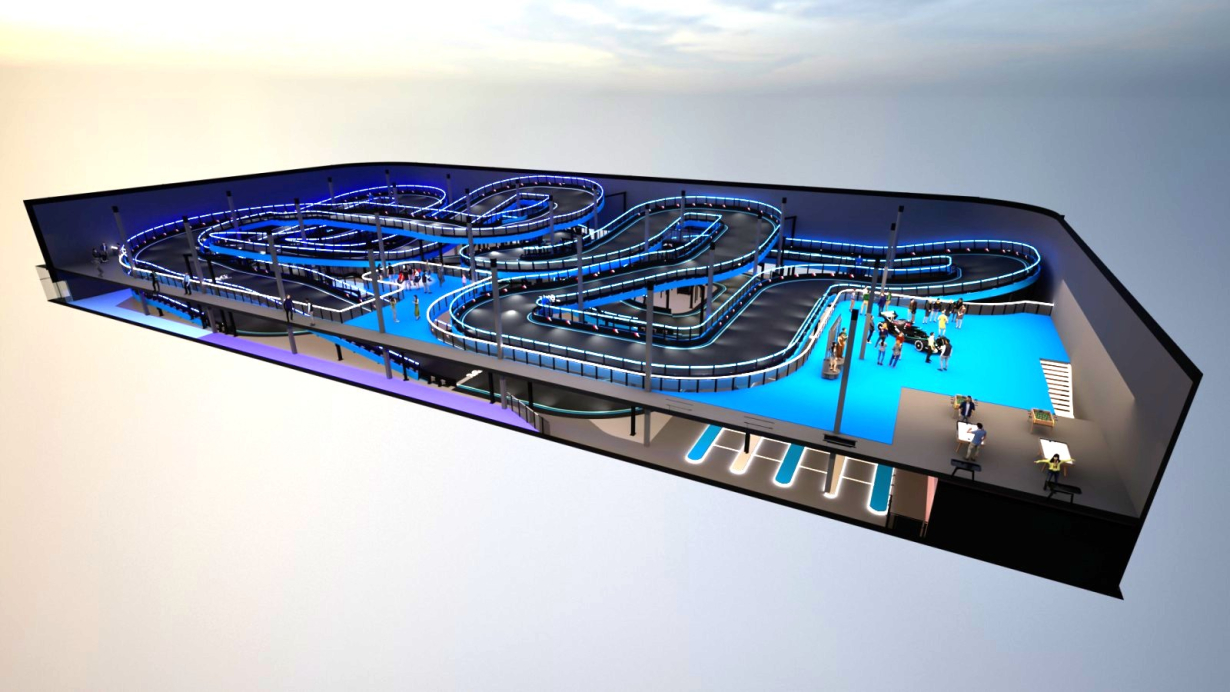 Le complexe abritera deux pistes de karting électriques spectaculaires, multi niveaux et lumineuses. Longues de plus de 300 mètres chacune et dessinées avec une combinaison de virages, dont certains inclinés tel un parcours de course comparable au Nascar. Ces pistes se combineront pour former une super track de 616 mètres, soit la plus longue piste intérieure au Canada.