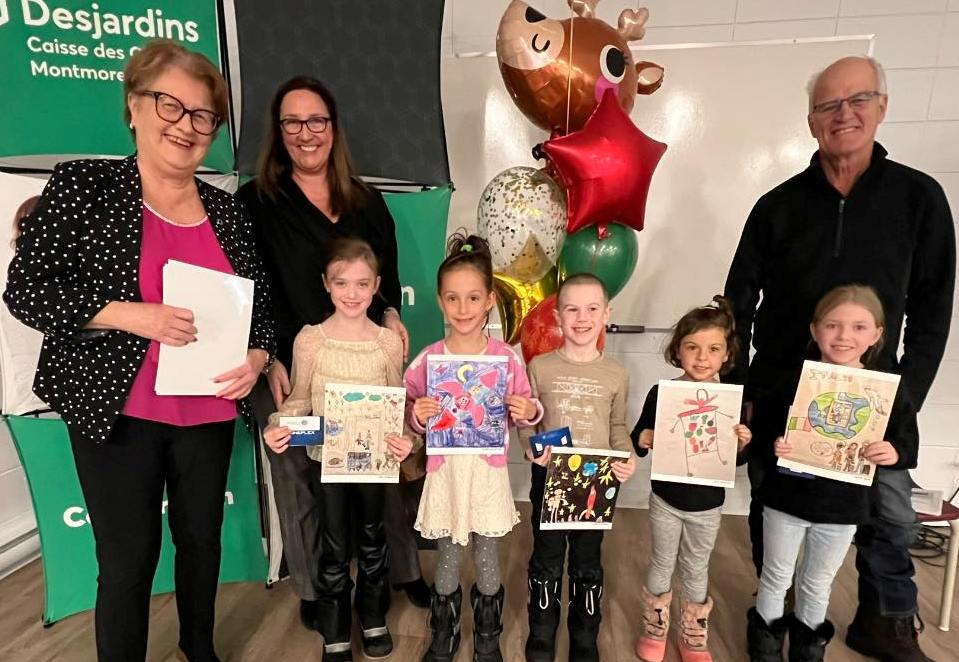 Réunis au Pivot lors du Gala des dessins de la caisse scolaire, les 20 finalistes ont reçu une carte-cadeau pour aller au cinéma et les quatre grands gagnants, un par école, Lily-Rose Murray (du Parc), Antoine Aguilar (Aux-Quatre-Vents), Léonie Blais (Boischatel) et Masaki Laberge (Beausoleil) ont eu le bonheur de recevoir un certificat-cadeau d’une valeur de 200?$ pour aller passer une journée hivernale en famille au Centre récréotouristique des Hautes-Terres (CRTHT) à Sainte-Brigitte-de-Laval.