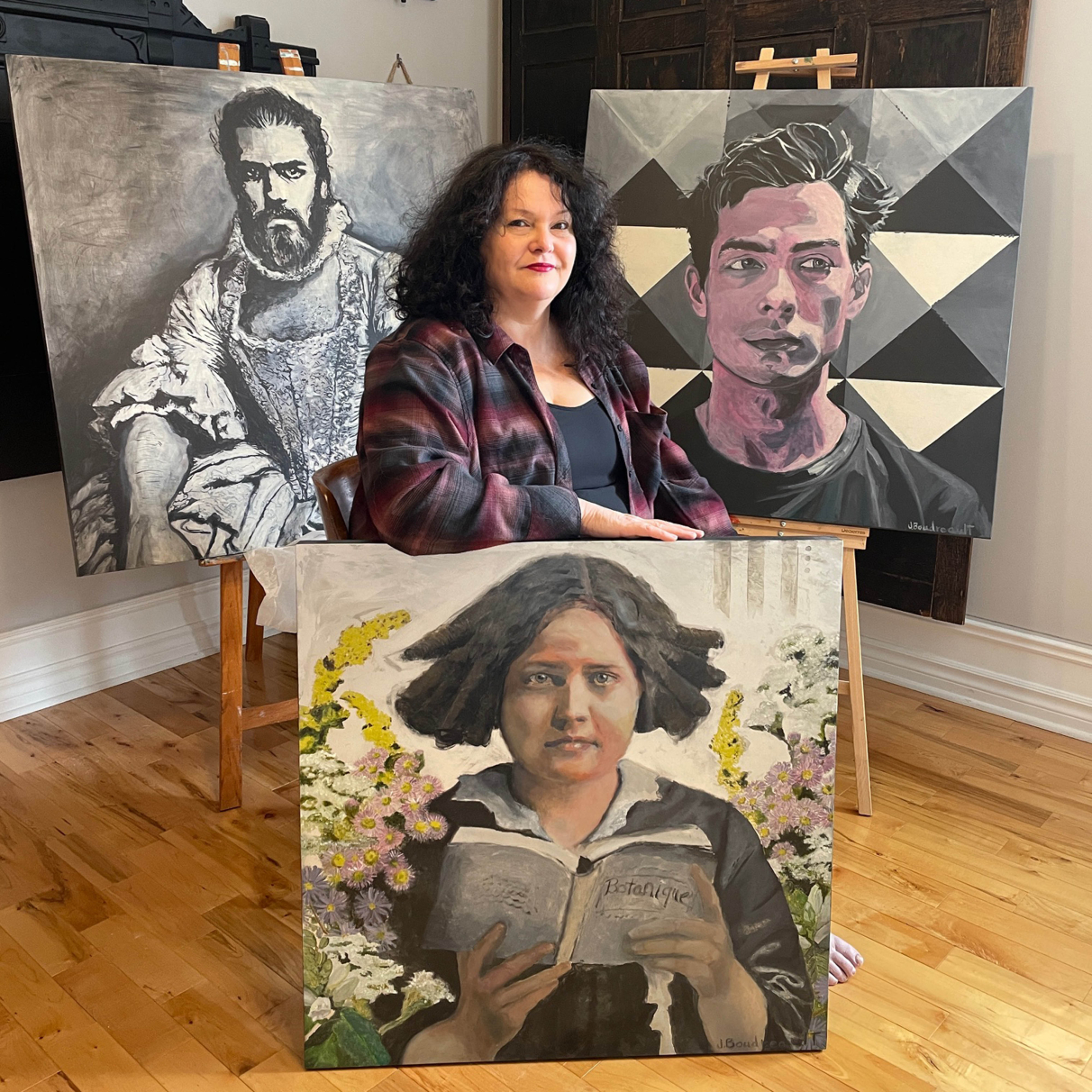 Loin des logiques de popularité numérique, le travail de Julie Boudreault capte l’attention par sa capacité à affirmer des présences singulières et à proposer une lecture incarnée du portrait. Issue du milieu du théâtre, du cirque et de la littérature, l’artiste aborde la peinture comme la construction d’un personnage avec densité, tension et sens du récit.