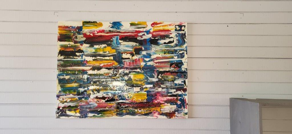 Sur la photo, on aperçoit l’une des deux œuvres données généreusement par Mark Charest et exposée au chalet de ski de fond du rang Saint-Julien, à Saint-Ferréol-les-Neiges. (Photo : gracieuseté Charestarts.com).