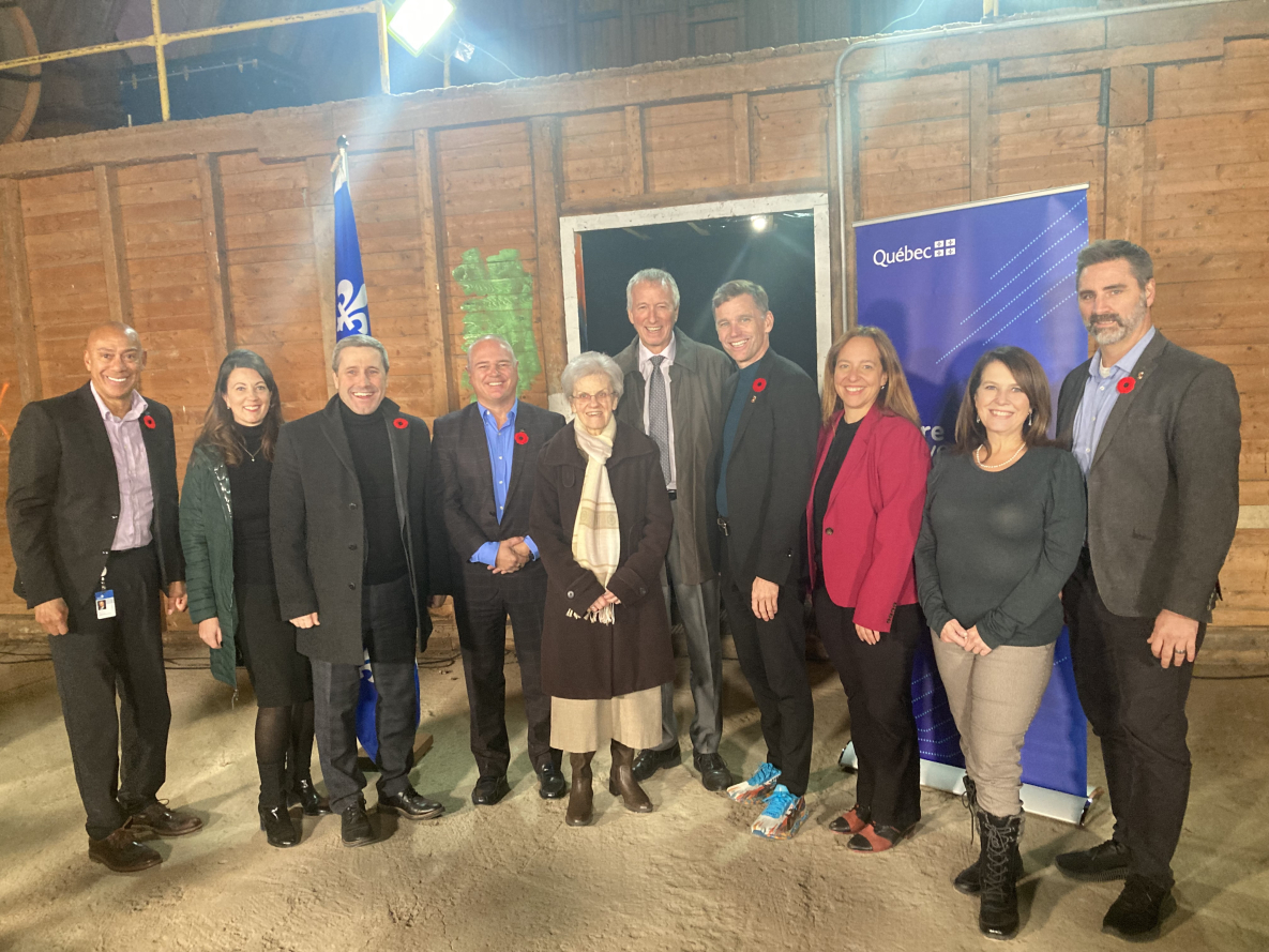 Sur la photo de groupe, Stevens Mélançon, conseiller municipal de la Chute-Montmorency-Seigneurial, Isabelle Roy, présidente de l’Arrondissement de Beauport et conseillère municipale de Robert-Giffard, le député de Montmorency, Jean-François Simard, animateur du point de presse, le ministre des Infrastructures, Jonatan Julien, sœur Monique Gervais, supérieure générale des Sœurs de la Charité de Québec, le ministre de l'Agriculture, des Pêcheries et de l'Alimentation, André Lamontagne, le maire de Québec, Bruno Marchand, Marie-Pierre Boucher, conseillère municipale de Louis-XIV, Marie-Josée Asselin, vice-présidente comité exécutif, conseillère municipale Loretteville-des Châtels, et Jean-François Gosselin, conseiller municipal de Sainte-Thérèse de Lisieux. (Photo : Michel Bédard)