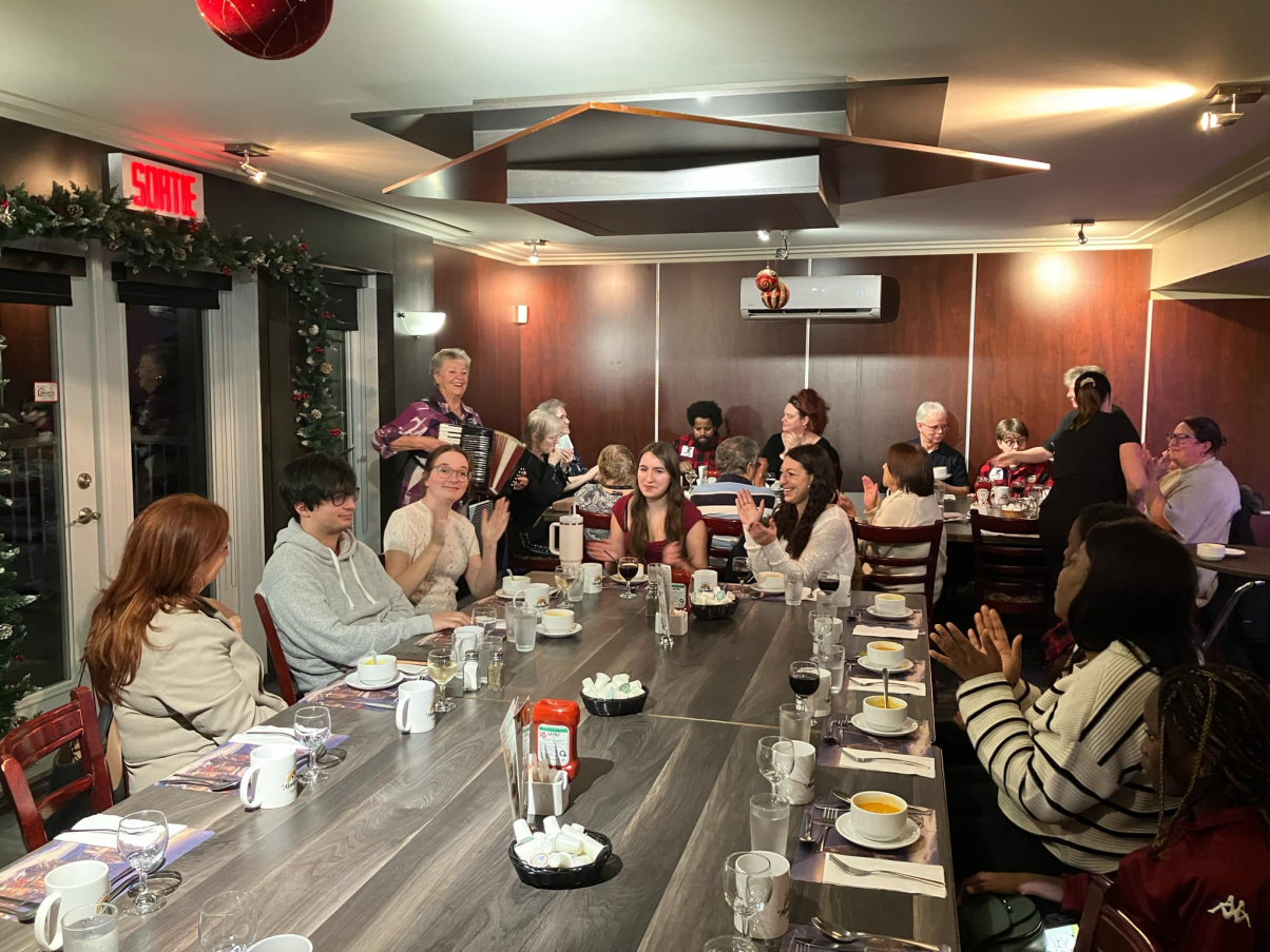 Sur la photo, on aperçoit l’ambiance festive qui règne parmi les participants du souper du Temps des Fêtes offert par le restaurant Le Montagnais de Sainte-Anne-de-Beaupré. (Photo : gracieuseté).