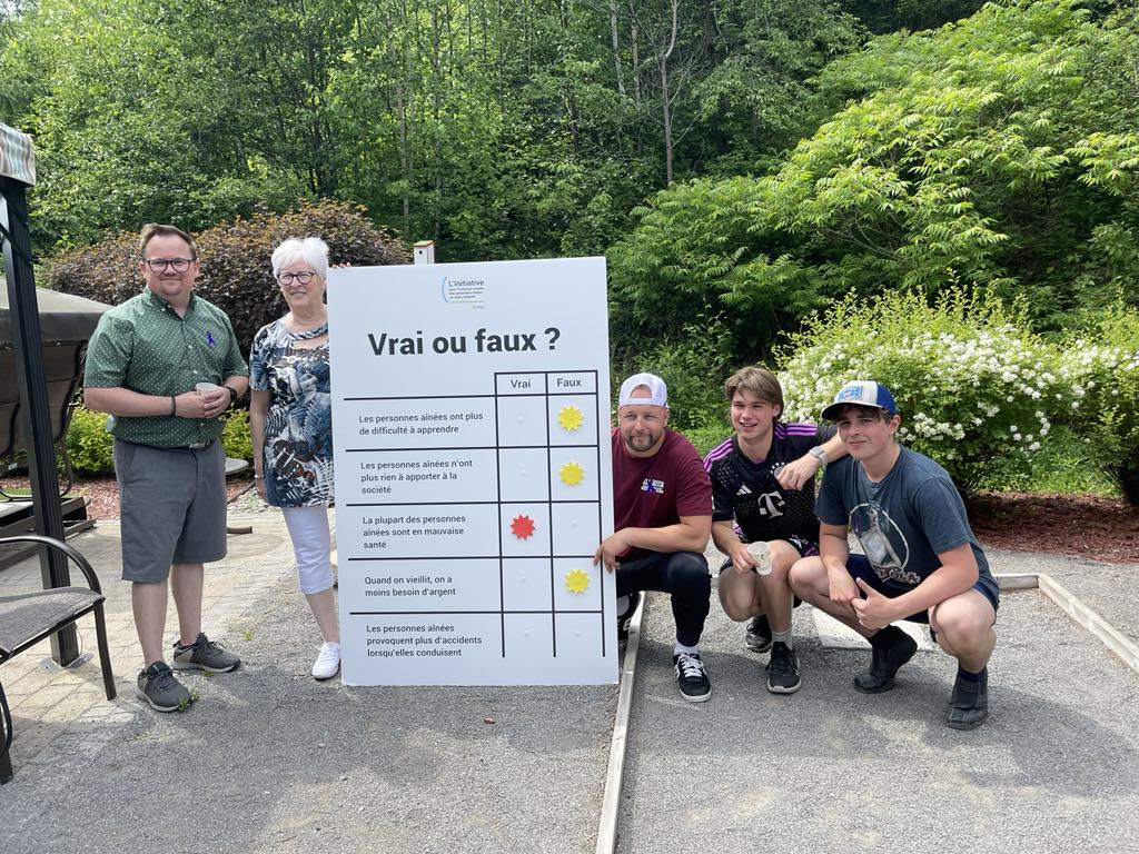 Les personnes aînées de la Côte-de-Beaupré ont profité d’une journée de sensibilisation aux enjeux pouvant les toucher le 13 juin dernier. Une centaine de personnes étaient rassemblées à la résidence des Jardins de la Côte, à Beaupré, afin de manifester leur solidarité dans le cadre de la journée internationale de lutte à la maltraitance des personnes aînées. Pour l’occasion, les acteurs locaux présents dont faisaient partie le maire de Beaupré, Pierre Renaud, ainsi qu’un représentant de la députée fédérale Caroline Desbiens, ont énoncé l’importance de prendre action envers la maltraitance faite aux personnes aînés, de sensibiliser la population et les personnes aînées elles-mêmes et de faire connaître les ressources d’aide disponibles. Le CPE La Peluche a égayé l’événement par la visite d’une quinzaine d’enfants qui ont remis des dessins aux personnes aînées présentes. Quelques élèves du Collège des Hauts Sommets se sont également mesurés au jeu de la pétanque et des galets au shuffleboard, de même qu’à un quiz sur l’âgisme qui a donné lieu à des échanges intéressants. Rappelons qu’afin de référer vers les bonnes ressources les personnes qui en ressentent le besoin, l’Association Bénévole Côte-de-Beaupré propose les services d’une personne sentinelle qui peut être contactée auprès de l’organisme. Sur la photo, on aperçoit des participants au quiz visant la sensibilisation à l’âgisme lors de l’activité.