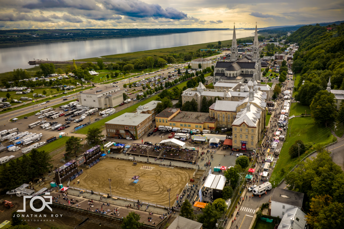 Sur la photo, on aperçoit le site du Rodéo Mont-Sainte-Anne en bordure de la basilique Sainte-Anne-de-Beaupré. (Photo : gracieuseté Jonathan Roy photographe).