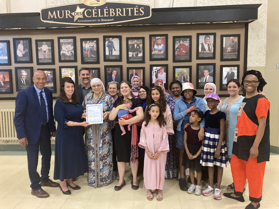 Les élus du conseil d’arrondissement de Beauport ont profité de la séance publique de juillet pour présenter une motion de félicitations à Kif Kif Planet Familles Mobilisées en Action qui célèbre ses 10 ans. Cet organisme de mobilisation citoyenne pour les personnes immigrantes et québécoises a comme mission de regrouper, accueillir, accompagner des personnes et des familles immigrantes et d’origine québécoise afin de les mobiliser dans des projets collectifs et inclusifs, en les mettant en contact avec les ressources de leur communauté. La motion rappelle que l’organisme Kif Kif porte bien son nom puisqu’il signifie d’égal à égal et que le tout démontre bien le travail de proximité qu’il effectue auprès des personnes immigrantes ayant choisi Beauport comme terre d’accueil. « Kif Kif est la combinaison du travail acharné de la fondatrice Aicha Lakhdar qui a une énergie et un dévouement inépuisables, mais également, le travail des membres du conseil d’administration et des dizaines de bénévoles engagés au succès de l’intégration des nouveaux arrivants dans leur nouvel environnement », a souligné la conseillère municipale du district de Robert-Giffard et présidente de l’arrondissement, Isabelle Roy, qui lui remet le document en compagnie de Stevens Mélançon, conseiller municipal du district de la Chute Montmorency-Seigneurial et de Jean-François Gosselin, conseiller municipal du district de Sainte-Thérèse-de-Lisieux.