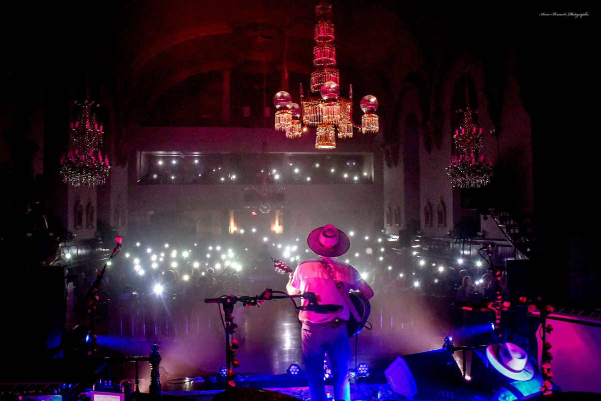Sur la photo, on aperçoit le chanteur et guitariste Claude Cobra (Mathieu Lafontaine) devant l’impressionnante foule venue assister à la prestation musicale du groupe Bleu Jeans Bleu. (Photo : gracieuseté Annie Bernard Photographie).