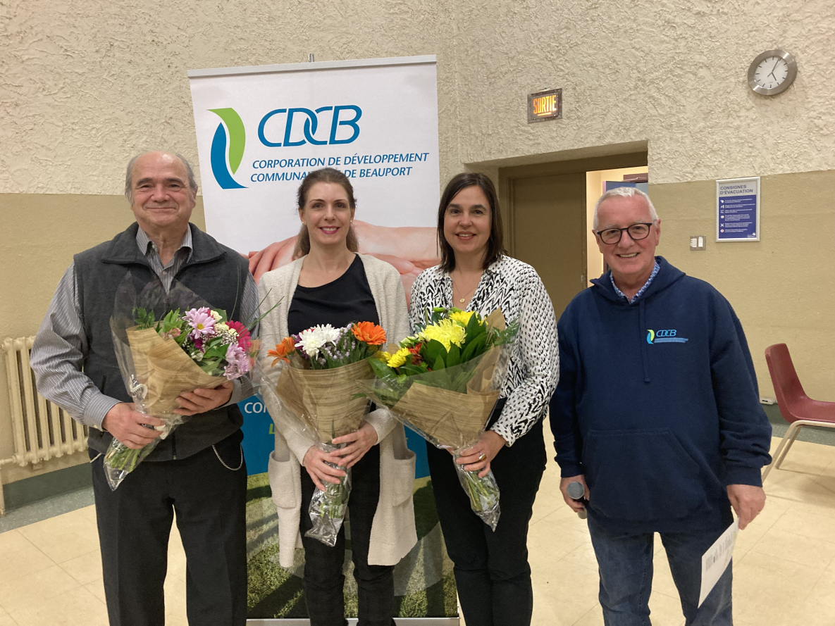 La Corporation de développement communautaire de Beauport (CDCB) a profité de son assemblée générale annuelle qui a réuni plus de 80 représentants d’une trentaine d’organismes membres et de partenaires pour rendre hommage à Dominique Zalitis, représentante de la Marée des Mots, présidente sortante pour ses six ans au conseil d’administration, Véronique Moreau, représentante de Gîte Jeunesse, membre sortante du conseil d’administration et Dominique Deschênes, bénévole d’exception au sein du projet de ferme urbaine sociocommunautaire et écologique (FUSÉ) qui opérera, l’été prochain, une ferme horticole sur cinq des 10 hectares consacrés aux projets communautaires dans l’Agro-parc sur des terres des Sœurs de la Charité de Québec acquises par le ministère de l’Agriculture, des Pêcheries et de l’Alimentation le long du boulevard Louis-XIV aux limites de Beauport et de Charlesbourg.