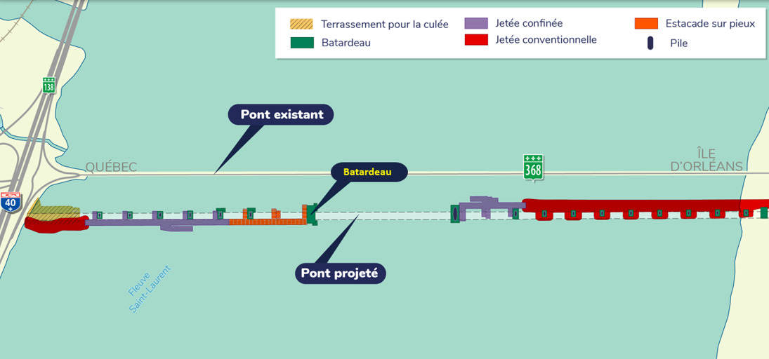 Certaines activités en eau ont repris en vue de la construction des ouvrages temporaires du côté de Québec.